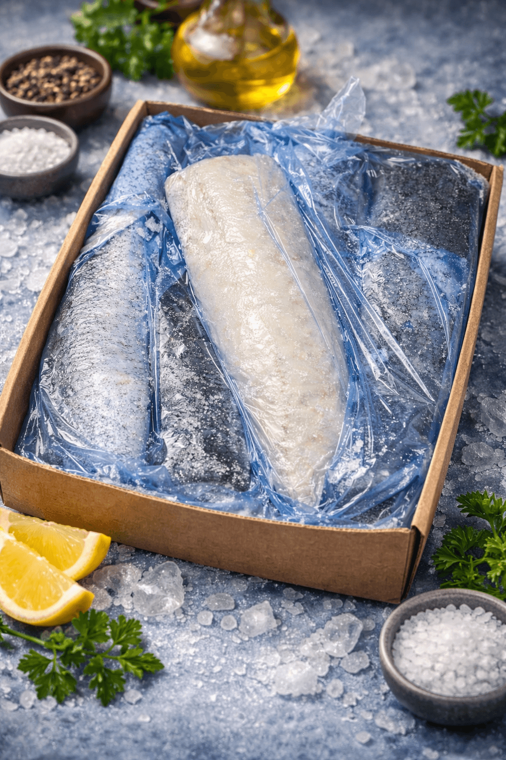 Zamówienia dostarczamy własnym transportem chłodniczym, zachowując pełny łańcuch mroźniczy (-18°C). Produkty nie są przepakowywane ani rozmrażane po drodze — ryby trafiają bezpośrednio pod Twoje drzwi w kontrolowanej temperaturze.