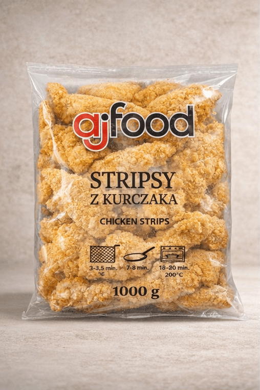 Stripsy są wstępnie podsmażone (prefried), co znacząco skraca czas przygotowania i pozwala uzyskać efekt restauracyjnego dania w warunkach domowych. To szybkie rozwiązanie na obiad, kolację lub przekąskę — bez konieczności długiego gotowania czy marynowania mięsa.